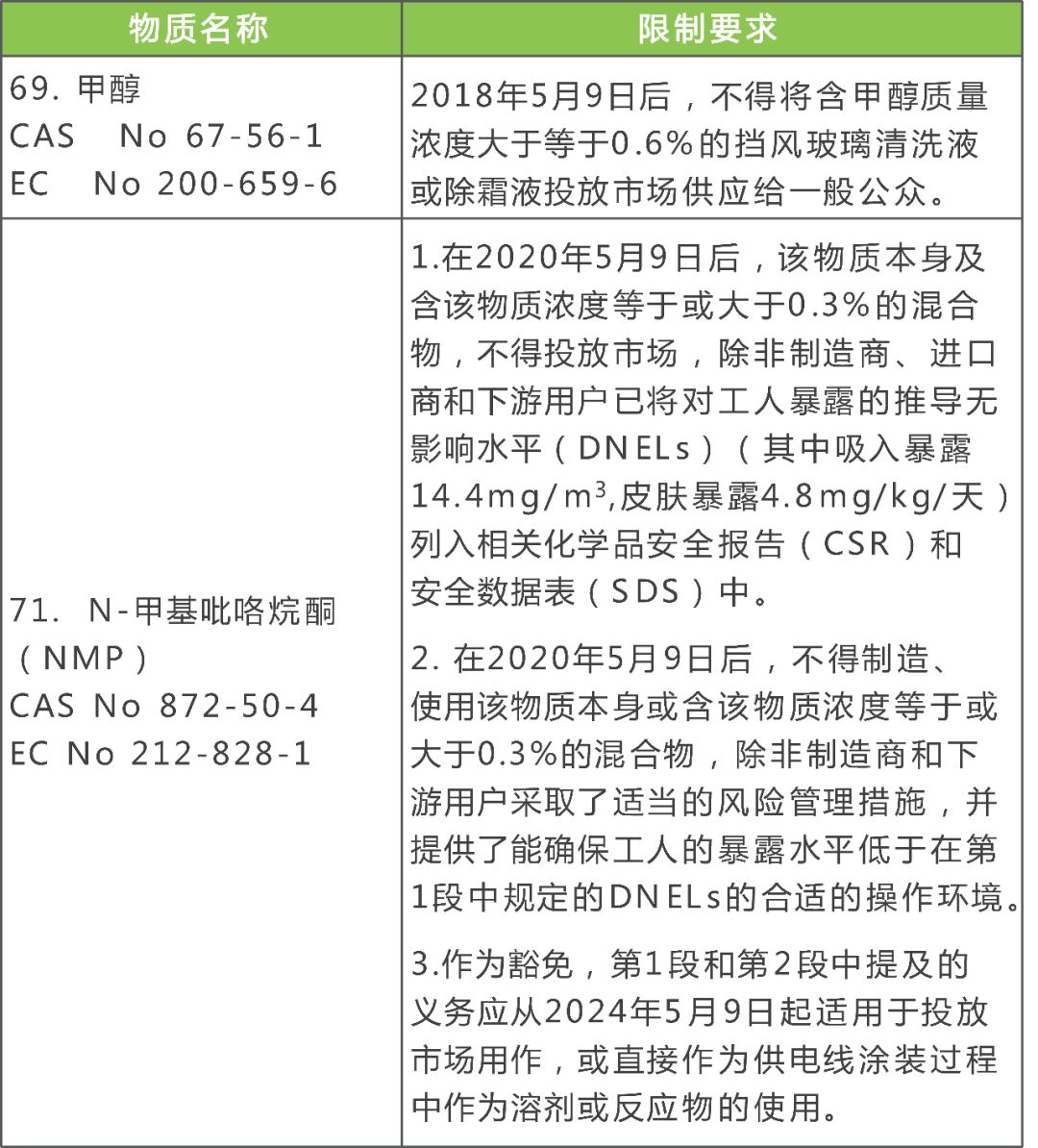 資訊 | REACH法規(guī)限制篇新增甲醇及NMP限制條款